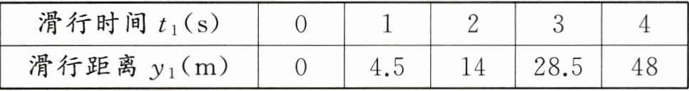 8. 一个滑道由滑坡(AB段)和缓冲带(BC段)组成,如图所示.滑雪者在滑坡上滑行的距离$ y_{1}(m) $和滑行时间$ t_{1}(s) $满足二次函数关系,并测得相关数据: