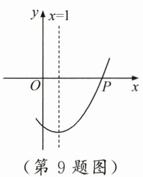 9. 如图,抛物线$ y = ax^{2} + bx + c $的对称轴为直线$ x = 1 $,点P,Q是抛物线与x轴的两个交点.若点P的坐标为(4,0),则点Q的坐标为