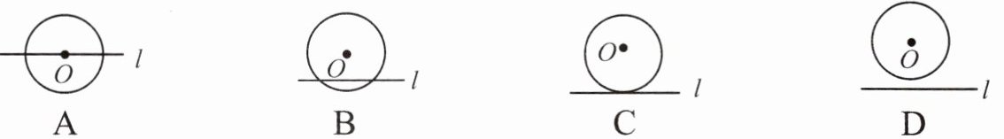 2. 已知⊙O 的半径为 5,圆心 O 到直线 l 的距离为 7,则反映直线 l 与⊙O 的位置关系的图形是