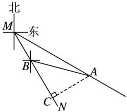 6. 如图,MN 表示某输水工程的一段设计路线,从 M 到 N 的走向为南偏东 30°,M 的南偏东 60°方向上有一点 A,以点 A 为圆心,500 m 为半径的圆形区域内为居民区.取 MN 上另一点 B,测得 BA 方向为南偏东 75°.已知 MB = 400 m,通过计算回答,如果不改变方向,输水路线是否会穿过居民区?