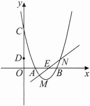 (1)得抛物线解析式为$ y=x^{2}-4x+3,$设 M,N 的横坐标为 m,n,直线 MN 过点$ E(\frac{5}{2},0),$