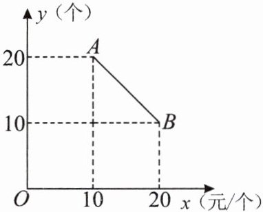 5. 某食品零售店新上架一款冷饮产品,每个成本为$8$元,在销售过程中,每天的销售量$y$(个)与销售价格$x$(元/个)的关系如图所示,当$10 \leq x \leq 20$时,其图象是线段$AB$.则该食品零售店每天销售这款冷饮产品的最大利润为