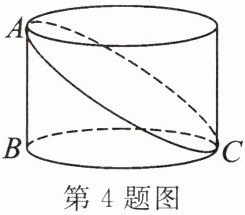 4. 如图, 已知圆柱底面的周长为$24\mathrm{cm}$, 高为$5\mathrm{cm}$, 在圆柱的侧面上, 过点$A和点C$嵌有一圈金属丝, 则这圈金属丝的周长最小为