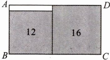 11. (创新题)如图,在长方形$ABCD中无重叠地放入面积分别为16cm^2和12cm^2$的两张正方形纸片,则图中空白部分的面积为