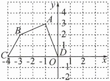 解:作AE⊥x轴于点E,BF⊥x轴于点F. S四边形ABCD=S△ADE+S梯形AEFB+S△BCF=$\frac{1}{2}$×1×3+$\frac{1}{2}$×(2+3)×2+$\frac{1}{2}$×1×2=1.5+5+1=7.5. 故四边形ABCD的面积为7.5.