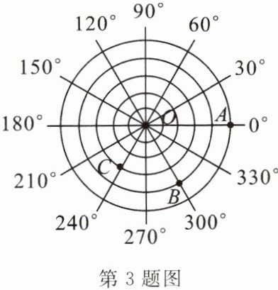 3. 如图,点$A$,$B的坐标分别表示为(5,0^{\circ})$,$(4,300^{\circ})$,则点$C$的坐标表示为