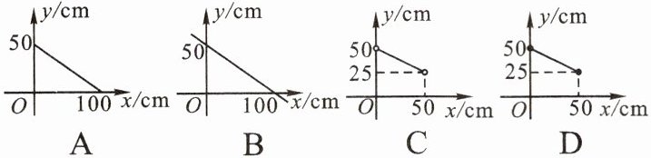 6. 若等腰三角形的周长为100cm,则能反映腰长 $ y $ 与底边 $ x $ 之间关系的图象是(