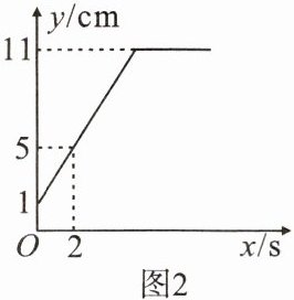 8. 如图1,在某个盛水容器内,有一个小水杯,小水杯内有部分水,现在匀速持续地向小水杯内注水,注满小水杯后,继续注水,小水杯内水的高度 $ y $(cm)和注水时间 $ x $(s)之间的关系满足如图2中的图象,则至少需要