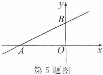 5. (扬州市中考)如图,已知一次函数 $ y = kx + b $($ k \neq 0 $)的图象分别与 $ x $、$ y $ 轴交于 $ A $、$ B $ 两点,若 $ OA = 2 $,$ OB = 1 $,则关于 $ x $ 的方程 $ kx + b = 0 $ 的解为