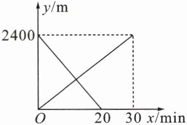 5. (盐城市中考)小丽从甲地匀速步行去乙地,小华骑自行车从乙地匀速前往甲地,同时出发.两人离甲地的距离$y$($m$)与出发时间$x$($min$)之间的函数关系如图所示.