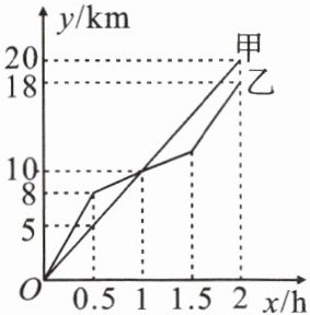 2. 在$20km$越野赛中,甲、乙两选手的行程$y$($km$)随时间$x$($h$)变化的图象如图,则下列说法中正确的是