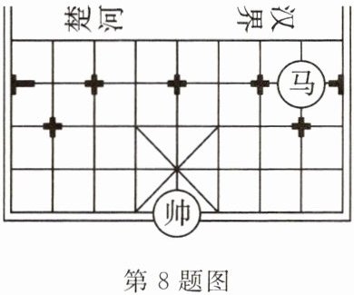 8. (贵州省中考改编) 象棋起源于中国,中国象棋文化历史悠久. 如图所示是某次对弈的残图,如果建立平面直角坐标系,使棋子“帅”位于点$(-2,-1)$的位置,则在同一坐标系下,经过棋子“帅”和“马”所在的点的一次函数表达式为(