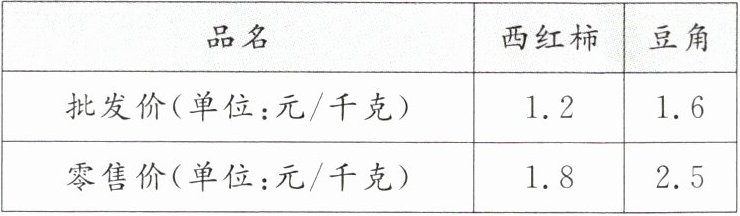 10. 某蔬菜经营户用 60 元钱从蔬菜批发市场购进西红柿和豆角共 40 千克到菜市场去卖,西红柿和豆角这天的批发价与零售价如下表所示: