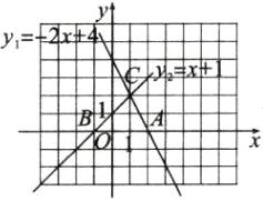 (2)在下面的平面直角坐标系中,画出一次函数 $ y _ { 1 } $ 和 $ y _ { 2 } = x + 1 $ 的图象,并借助图象求方程组 $ \left\{ \begin{array} { l } { y = k x + b, } \\ { y = x + 1 } \end{array} \right. $ 的解;