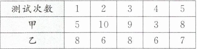 3. (衡阳市中考)某射击运动队进行了五次射击测试,甲、乙两名选手的测试成绩如下表。甲、乙两名选手成绩的方差分别记为 $ s^{2}_{甲} $ 和 $ s^{2}_{乙} $,则 $ s^{2}_{甲} $ 和 $ s^{2}_{乙} $ 的大小关系是(