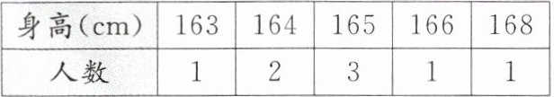 4. (滨州市中考)某芭蕾舞团新进一批女演员,她们的身高及其对应人数情况如表所示: