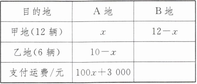 7. 某物流公司调用了卡车12辆和6辆分别从甲、乙两地运送物品,其中10辆卡车到A地,8辆卡车到B地.已知每辆卡车从甲地运送物品到A地和B地的运费分别为400元和800元,从乙地运送物品到A地和B地的运费分别为300元和500元.设从甲地去往A地的卡车有x辆.