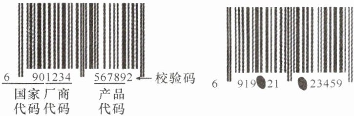 11. 新考向 情境素材(2024·福州一中期末)如图,商品条形码是商品的“身份证”,共有 $ 13 $ 位数字.它是由前 $ 12 $ 位数字和校验码构成,其结构分别代表“国家代码、厂商代码、产品代码和校验码”.