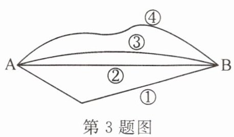 3. 如图,从学校 $A$ 到书店 $B$ 有①②③④四条路线,其中最短的路线是(