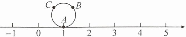 10. 新考向 推理能力如图,把周长为 3 个单位长度的圆放到数轴(单位长度为 1)上,A,B,C 三点将圆三等分,将点 A 与数轴上表示 1 的点重合,然后将圆沿着数轴正方向滚动,依次为点 B 与数轴上表示 2 的点重合,点 C 与数轴上表示 3 的点重合,点 A 与数轴上表示 4 的点重合……若当圆停止运动时点 B 正好落到数轴上,则点 B 对应的数轴上的数可能为 (