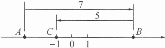 7. (2023·福州闽清县期中)如图,数轴上一动点 A 先向右移动 7 个单位长度到达点 B,再向左移动 5 个单位长度到达点 C. 若点 C 表示的数是-1,则点 A 原来表示的数是