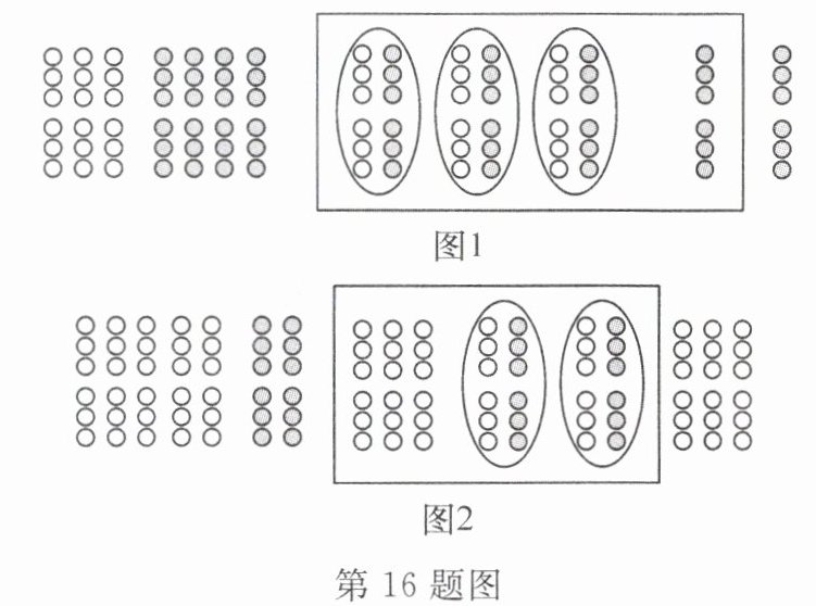 16. 新考向 数学文化(2023·福州屏东中学期中)我国是最早认识负数,并进行相关运算的国家. 在古代数学名著《九章算术》里就记载了利用算筹实施“正负术”的方法,图 1 表示的是计算$3 + (-4)$的过程,按照这种方法,图 2 表示的过程应是在计算(