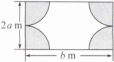 8. 如图,这是某居民小区的一块宽为2a m,长为b m的长方形空地,为了美化环境,准备在这块长方形空地的四个顶点处各修建一个半径为a m的扇形花台,然后在花台内种花,其余空地种草.