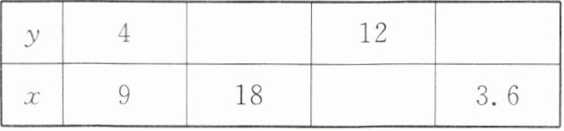9. 已知下表中的 $x$ 和 $y$ 两个量成反比例关系,请把表格填写完整: