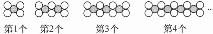 5. (2023·山西)如图,这是一组有规律的图案,它由若干个大小相同的圆片组成.第 1 个图案中有 4 个白色圆片,第 2 个图案中有 6 个白色圆片,第 3 个图案中有 8 个白色圆片,第 4 个图案中有 10 个白色圆片……依此规律,第$n$个图案中有