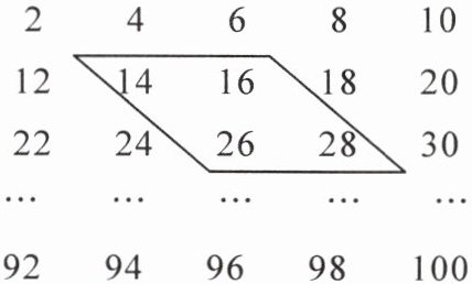 7. 新考向 推理能力 下列数阵是由 50 个偶数按照$5×10$排成的,框内有四个数.