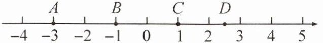 5. 数轴上有 $ A,B,C,D $ 四个点,其中表示的数的绝对值等于 3 的点是(