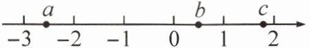 2. 有理数 $ a,b,c $ 在数轴上的对应点的位置如图所示,则这三个数中,绝对值最大的是(