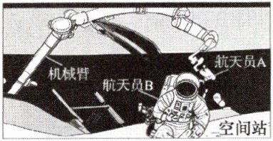 5. (2024·湖北)2024 年 5 月 28 日,神舟十八号航天员圆满完成出舱任务。如图,搭乘机械臂的航天员 A 已为空间站安装好空间碎片防护装置,航天员 B 正在出舱。以空间站为参照物,安装好的防护装置是