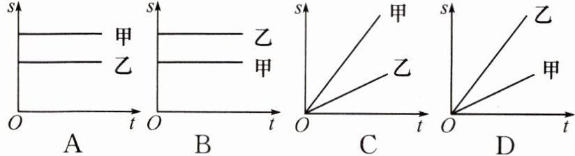 3. 甲、乙两人同时从起跑线起跑,匀速跑步前进,经过一段时间后两人的位置如图所示,下列能反映两人运动的路程与时间关系的图像是(