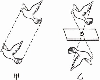 5. 沈括在《梦溪笔谈》中记述到“若莺飞空中,其影随莺而移”(如图甲),而在纸窗上开一个小孔使莺的影子呈现在室内纸屏上,却观察到“莺东则影西,莺西则影东”(如图乙),则下列说法不正确的是 (