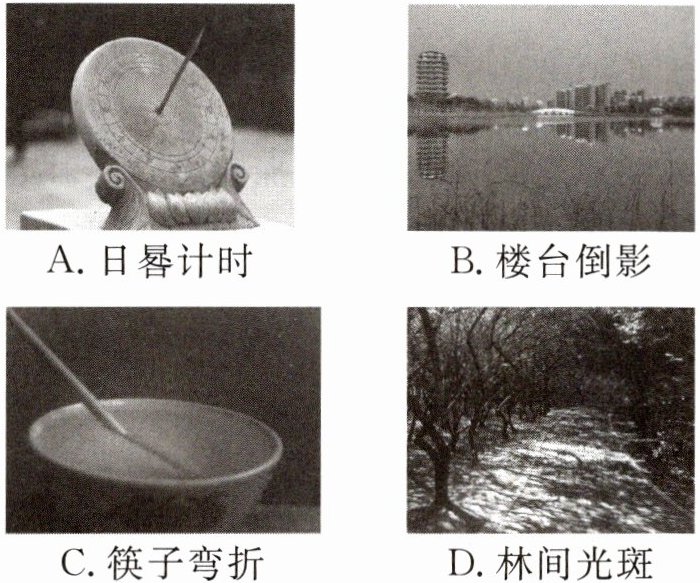 2. (2024·陕西)下列四幅图与诗句“掬水月在手,弄花香满衣”中所涉及的光现象相同的是 (