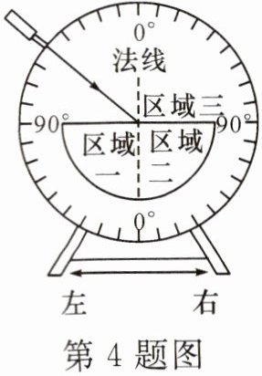 4. 小丹用光学装置探究光的现象及其特点。如图所示,光从空气射向半圆形玻璃砖,她发现折射角小于入射角(折射光线未画出)。针对此实验,以下说法正确的是 (
