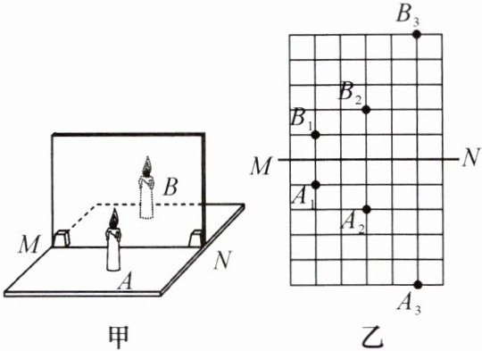 关系。将点燃的蜡烛 A 放置在 MN 前面,没有点燃的蜡烛 B 在 MN 后面移动,直至与 A 的像完全重合