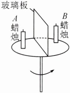 (1)用两个打火机同时点燃两支蜡烛,然后模仿表演者吹 $A$ 蜡烛,结果只吹灭了 $A$ 蜡烛。和同学讨论后,一致认为表演者在表演中只点燃了 $A$ 蜡烛,$B$ 蜡烛并未被点燃。随后,小明通过实验验证了他们的猜想,最终明白了其中的道理:$B$ 蜡烛并未被点燃,观众看到的是 $A$ 蜡烛烛焰通过玻璃板所成的
