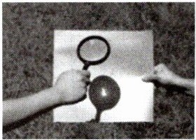 在利用太阳光测量凸透镜焦距时,小华将凸透镜正对着太阳,再把一张纸放在它的下方,如图所示。当在纸上呈现一个并非最小的光斑时,测得这个光斑到凸透镜的距离为L,小华推断,凸透镜的焦距一定大于L。