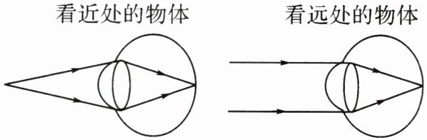 9. 如图为正常人眼看远近不同物体时眼睛的自动调节,以下分析正确的是(