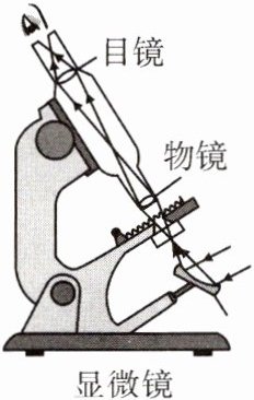 )A.显微镜的目镜成正立、放大的虚像,物镜成倒立、放大的实像