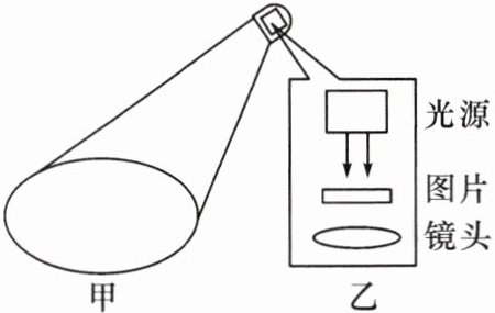 10. 如图甲所示是公共场所的宣传投影灯,装在高处的投影灯照在水平地面上出现图案,其内部结构如图乙所示。下列说法正确的是(
