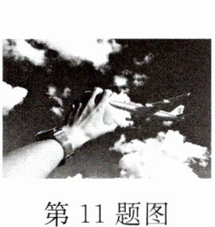 11. 新考向 物理观念“强行透视法”是一种富有创意的拍摄技巧。拍摄时,让两个物体离照相机镜头远近不同,再调整拍摄角度,使两物体的像在同一张照片中呈现出有趣的效果。如图,是利用该技巧拍摄的照片,下列说法正确的是(