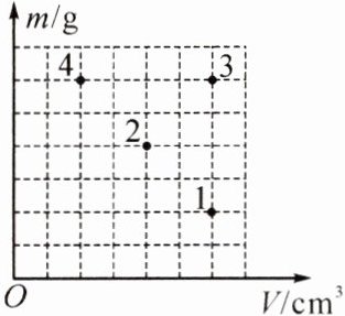 6. (2024·宁德期末)小明同学在研究物质密度时,测量了四种固体的体积与质量,把它们描在如图的坐标纸上,根据图像可得(