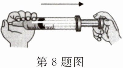 8. (2023·泉州鲤城区期末)如图,拔掉注射器的针头后,用大拇指按住橡皮塞将开口堵住(防止漏气),另一只手往外拉活塞。在往外拉活塞的过程中,注射器内气体的 (