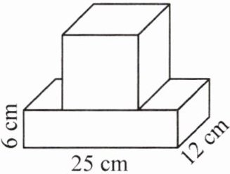表面积:12²×6+(25×12+25×6+12×6)×2-12×12×2=1620(平方厘米)体积:12³+25×12×6=3528(立方厘米)
