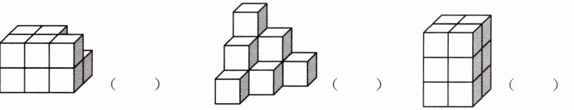4. 下面三个物体都是由同样大的正方体摆成的,哪个物体体积最大?在( )里画“$◯$”。