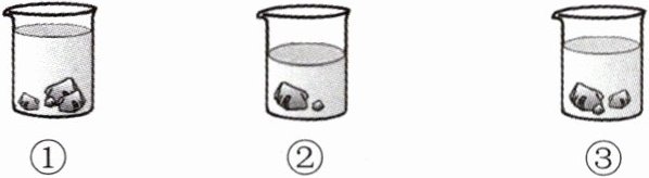 3. 三个相同的杯子里装有同样多的水,放入石子后水面如下图。(