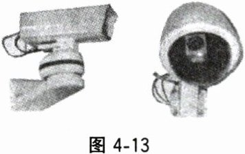 4. 图4 - 13是在一些交通道路口、银行等公共场所安装的两种电子监控器。它们的光学系统收集监控区域内的景物信息,光电转换系统把光信号转换成电信号,输送到监控中心,实现间接监控的目的。其光学系统的工作原理相当于( )。